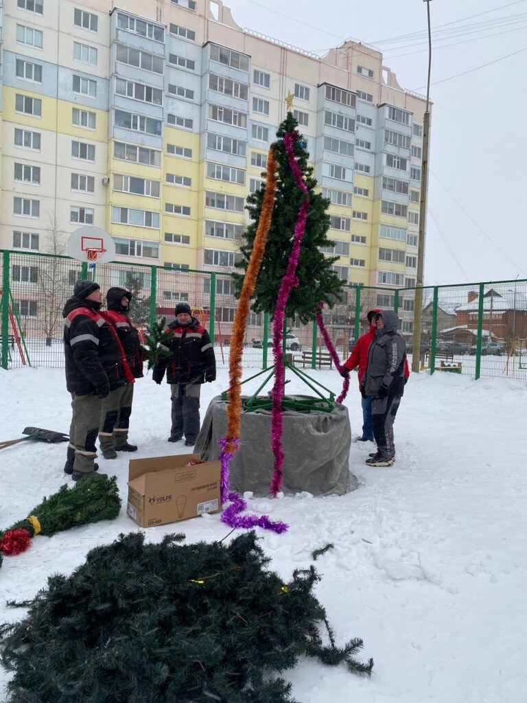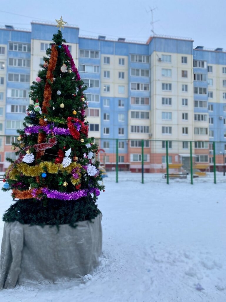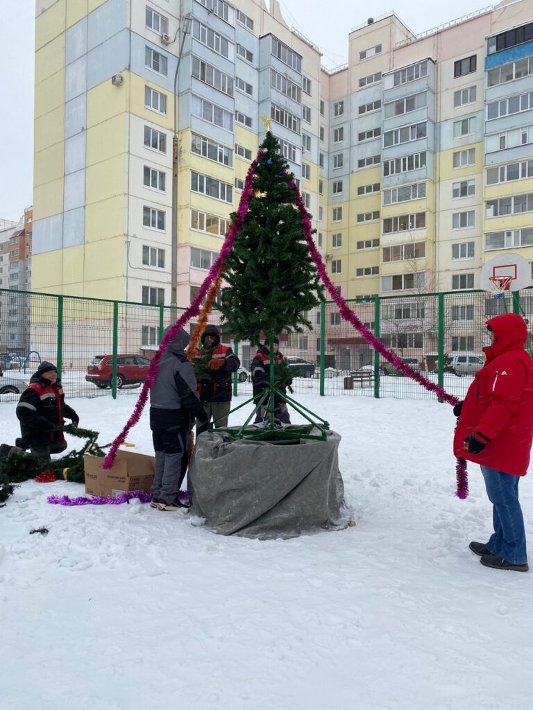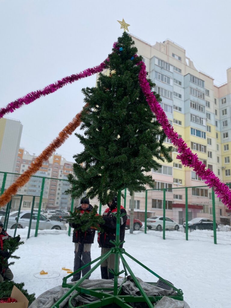 Какой Новый год без ёлки? Традиционно зеленую красавицу установили на спортивной площадке во дворе домов № 9, 10 и 11 в 15 микрорайоне.