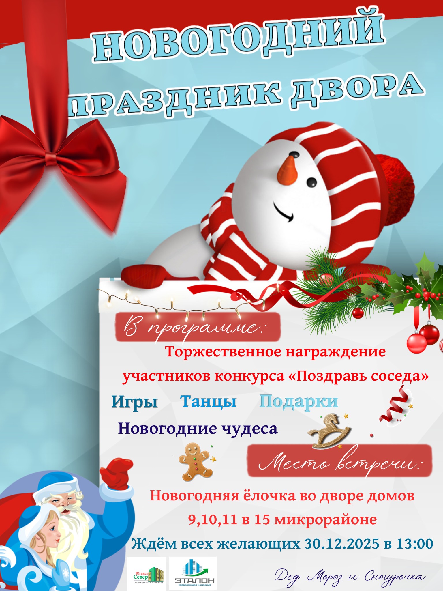 Сотрудники УК «ЮганскСевер» и «ЭТАЛОН» создают праздничное настроение и готовятся к новогоднему празднику двора, который состоится 20.12.2025 в 11:00.