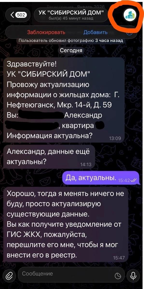 К тому же схема уже не новая: Пишут от лица руководства управляющей организации под предлогом проверки действующих контактов жителей.