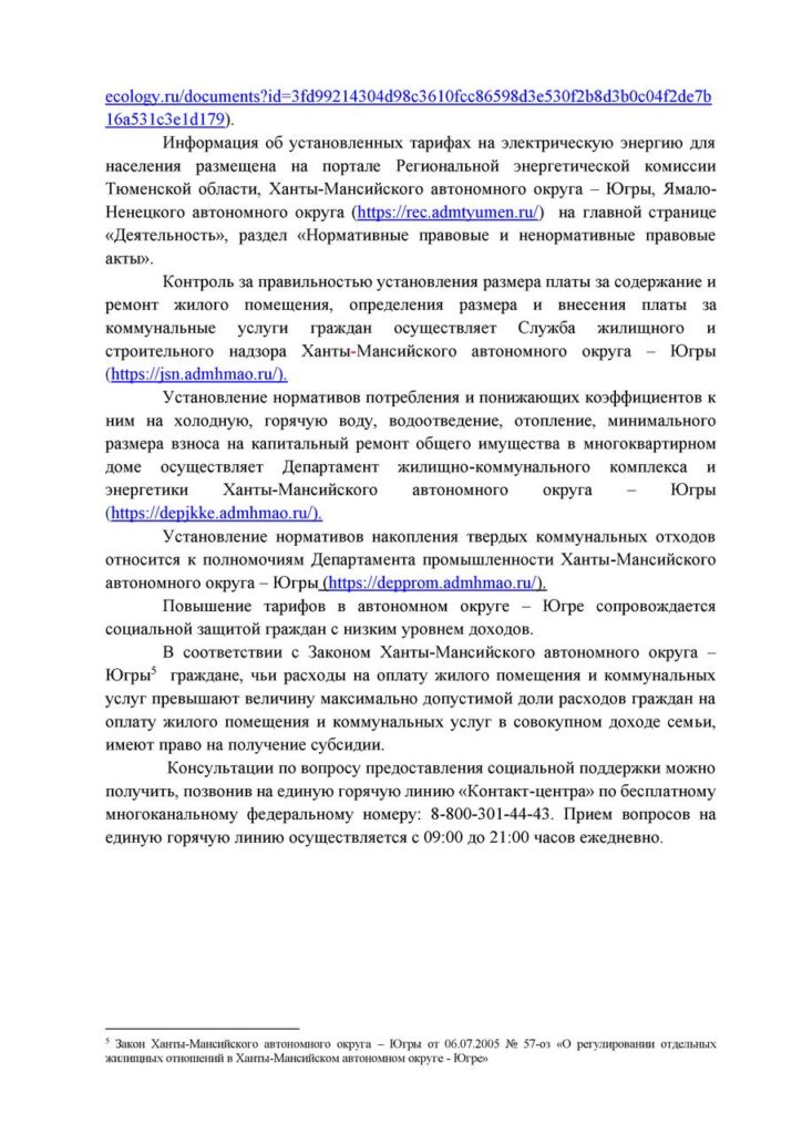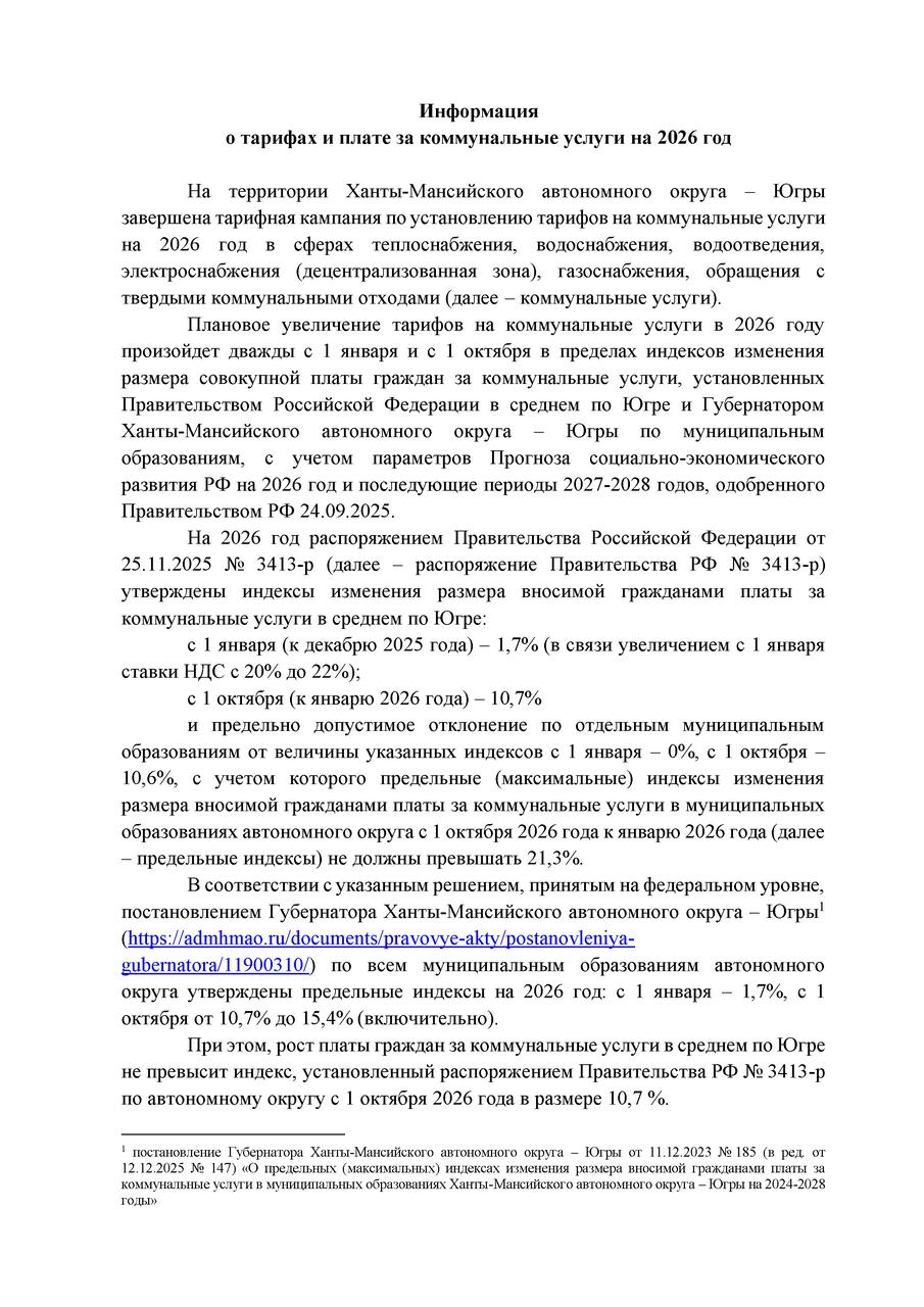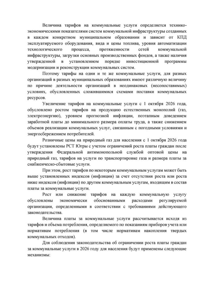 Напомним, что Распоряжением Правительства РФ утверждены предельные индексы роста платы за коммунальные услуги в 2024 году. По Югре это 9,6% и возможно отклонение по отдельным муниципалитетам до 11,6%.
