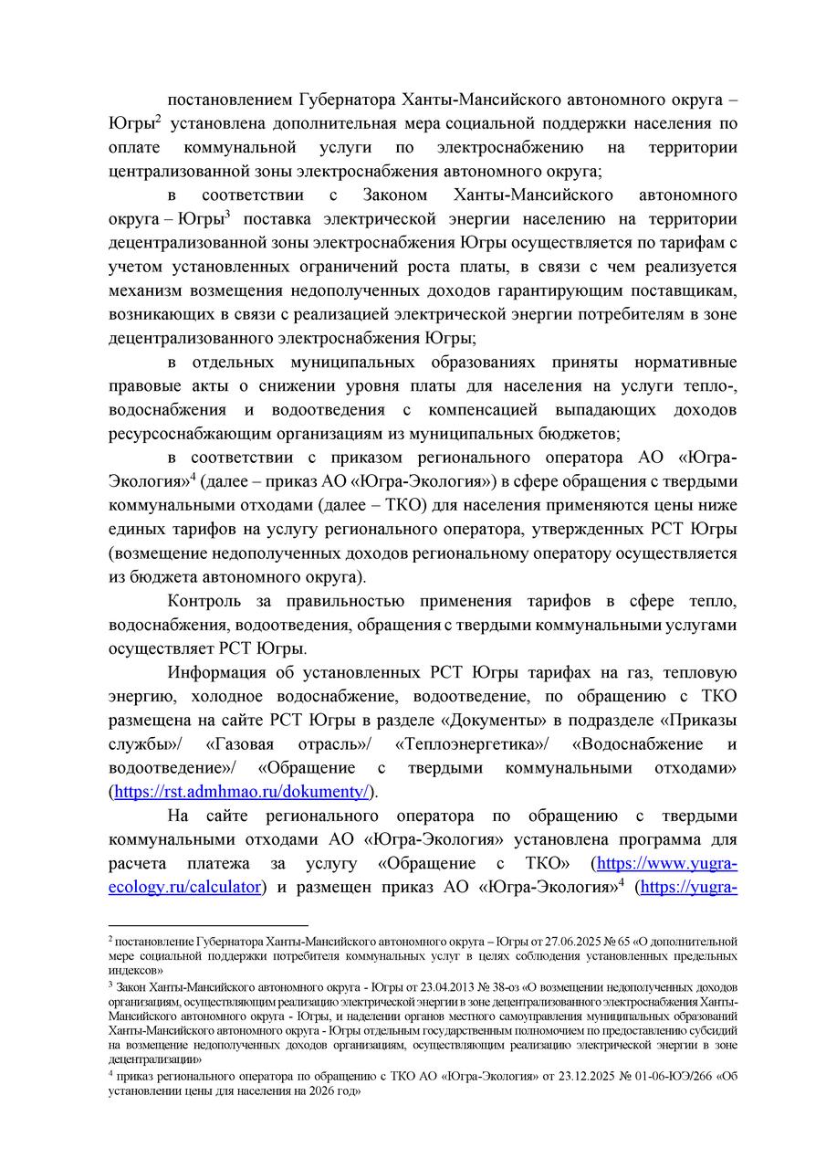Информация по изменению тарифов с 1 января 2026