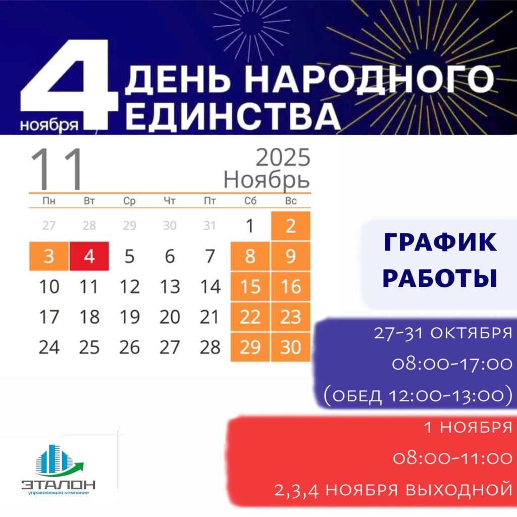 Спешим сообщить Вам о режиме работы Управляющей Компании в праздничные и выходные дни.