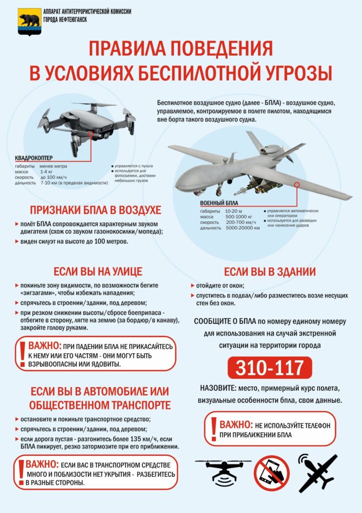В связи с возникшей беспилотной угрозой. Настоятельно рекомендуем, в случае визуального обнаружения беспилотного летательного аппарата: