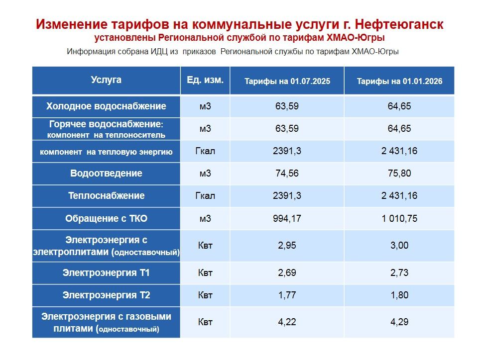 Информация по изменению тарифов с 1 января 2026